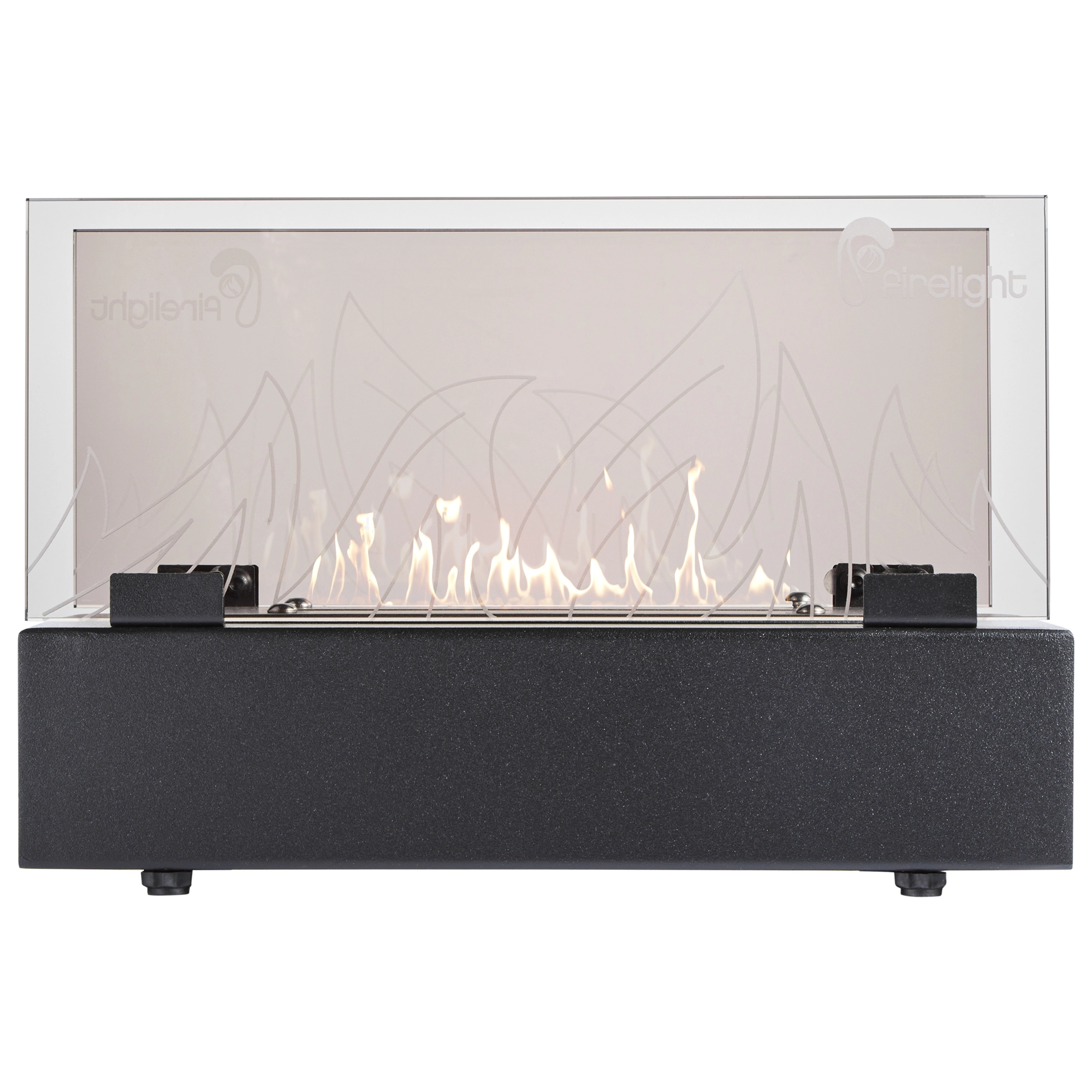 Закаленное жаропрочное стекло настольного биокамина BFP/T-3520 Glass украшено лазерной гравировкой в виде языков пламени и прекрасно акцентирует 20-ти сантиметровую линию живого огня.