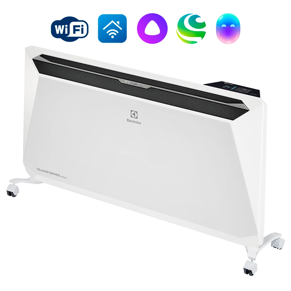 Блок управления Transformer Digital Inverter Electrolux ECH/TUI4 плавно изменяет мощность нагревательного элемента в зависимости от разницы между фактической и заданной температурой в помещении, далее работает только на её поддержание, снижая энергопотребление, потребляя в 3 раза меньше электроэнергии, что подтверждено лабораторными исследованиями РосТест*.