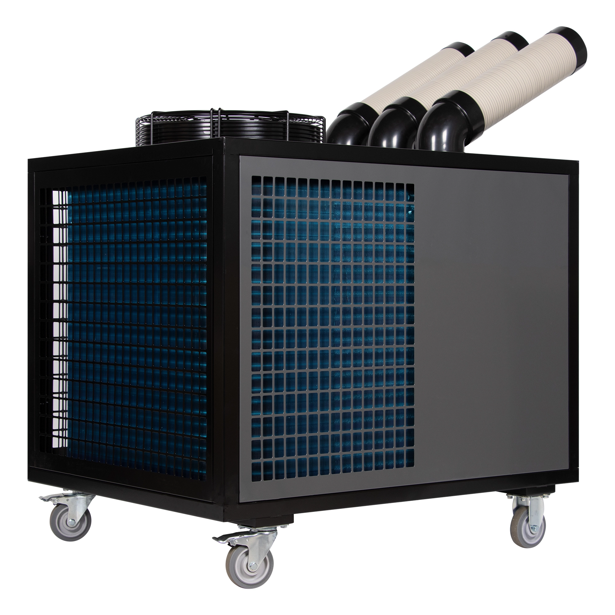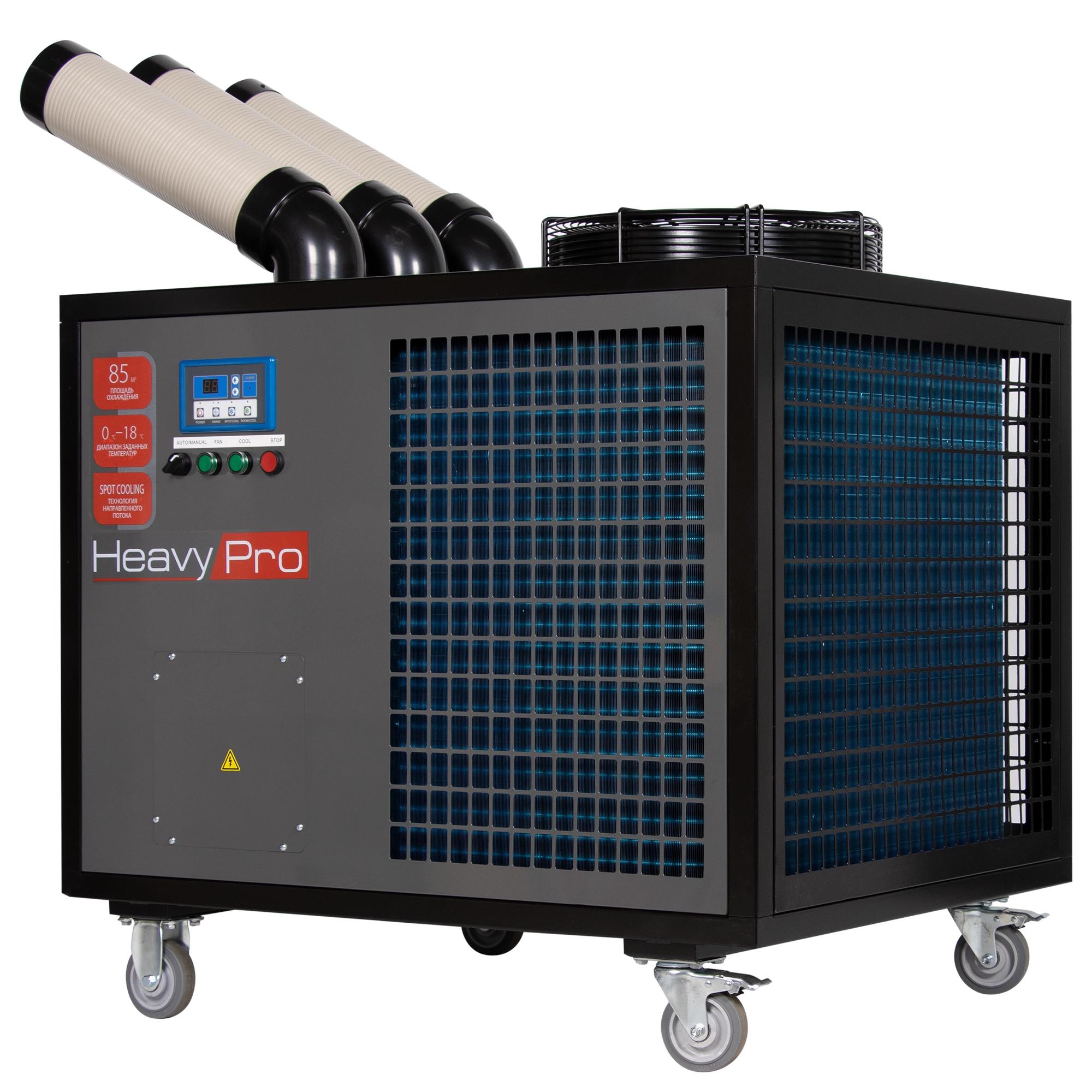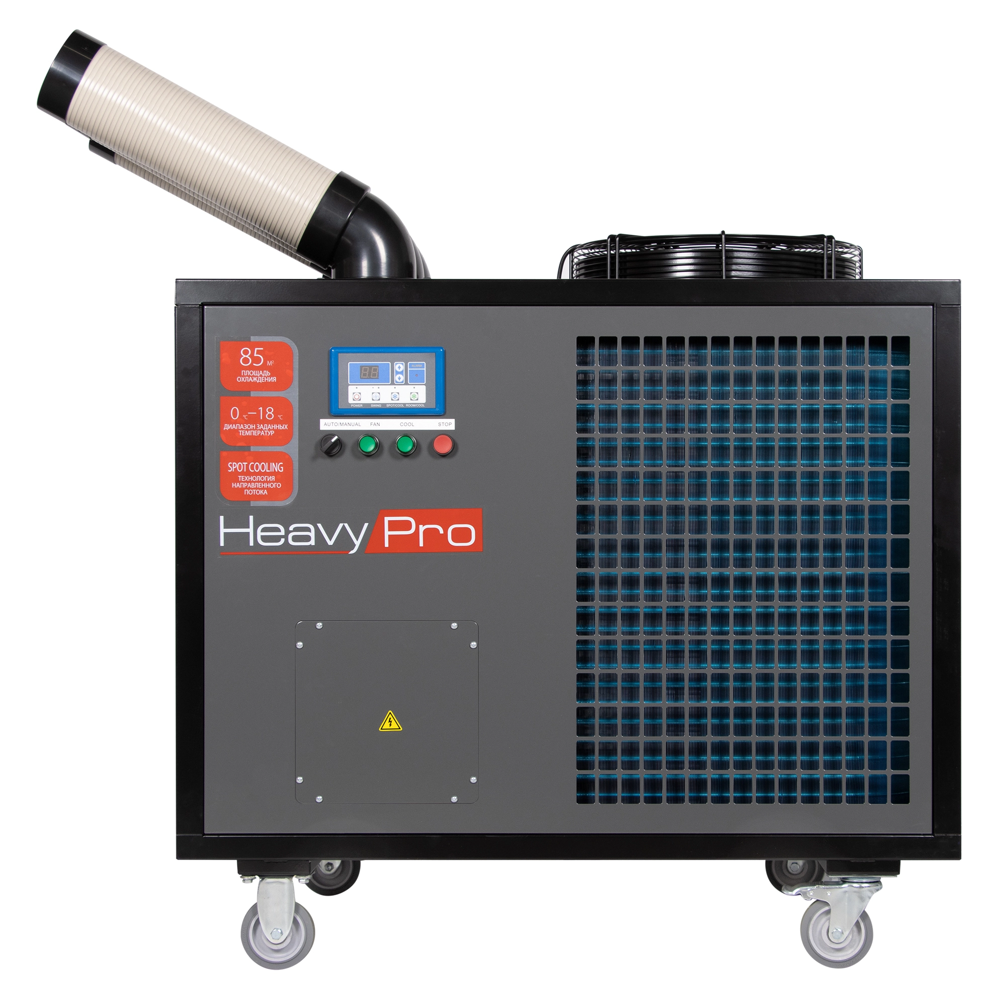 Такие приборы также могут быть использованы для точечного охлаждения оборудования в период пиковых нагрузок при работе в жаркое время. Технология SPOT COOL – гибкие воздуховоды-направляющие вращающиеся на 180 градусов позволяют точечно подавать холодный воздух в необходимое место.
