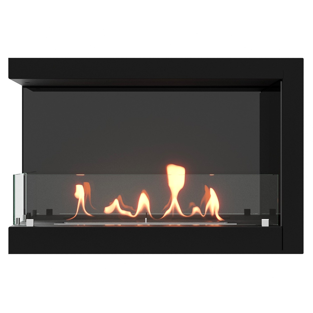 Представляют сборную металлическую конструкцию, способную создать полуоткрытое безопасное пространство для огня c топливным блоком ограниченную закаленным стеклом с двух сторон.