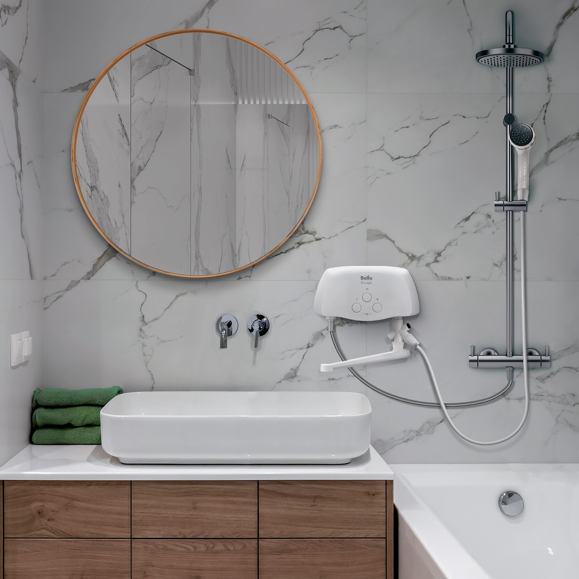 Водонагреватель проточный Ballu 3-Logic TS (3,5 kW) - кран+душ